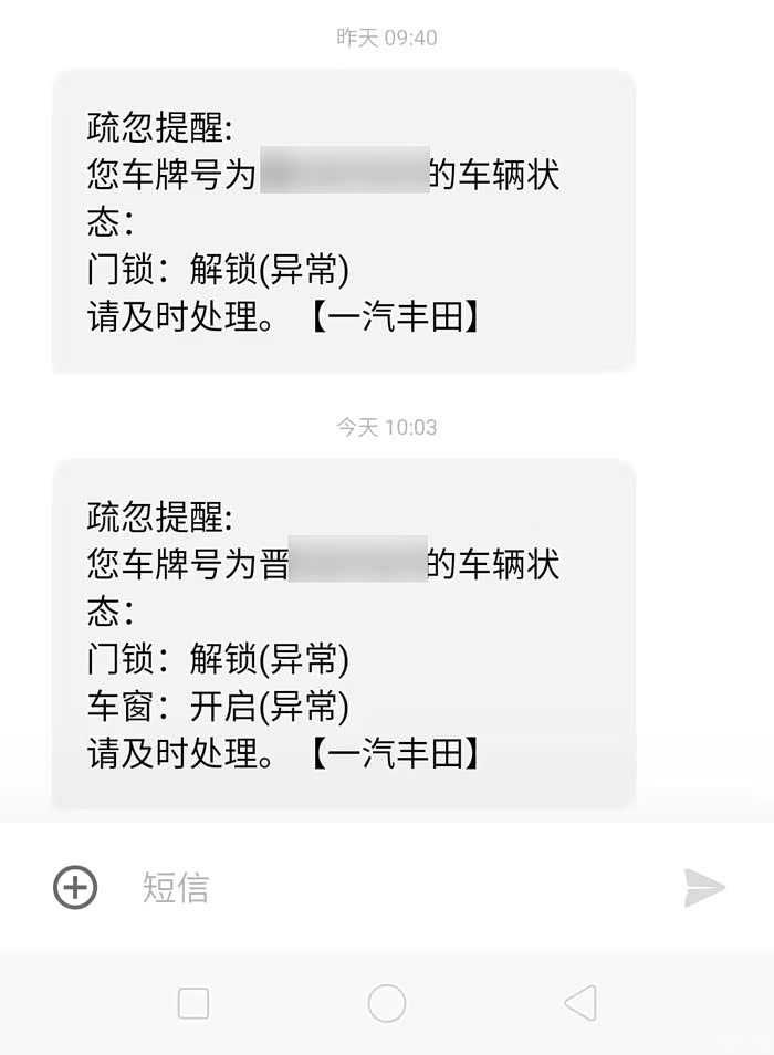 这就是之前发给我手机的提醒短信,车辆的异常状态及时反馈给你