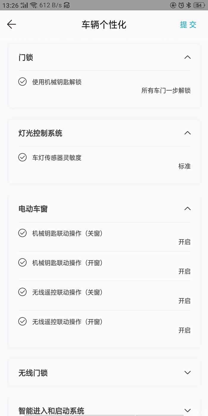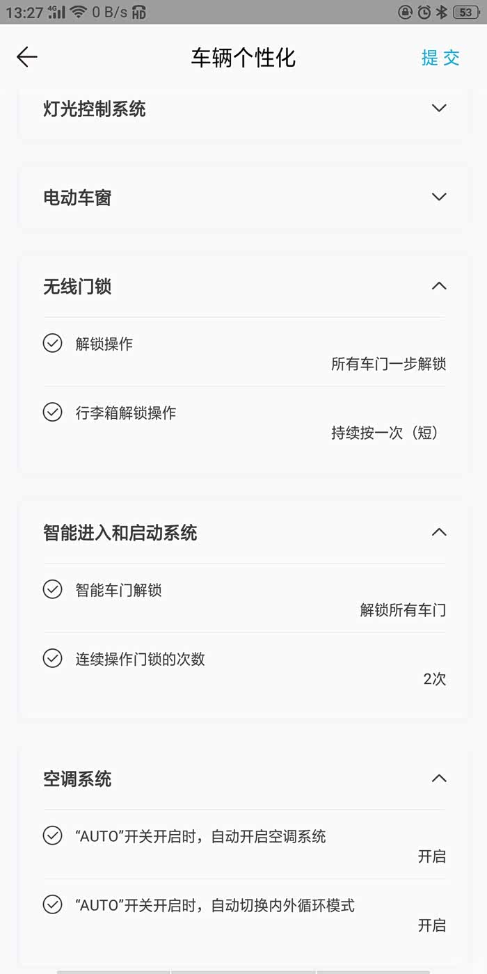 车锁,灯光,空调等内容都可以实现个性化设置