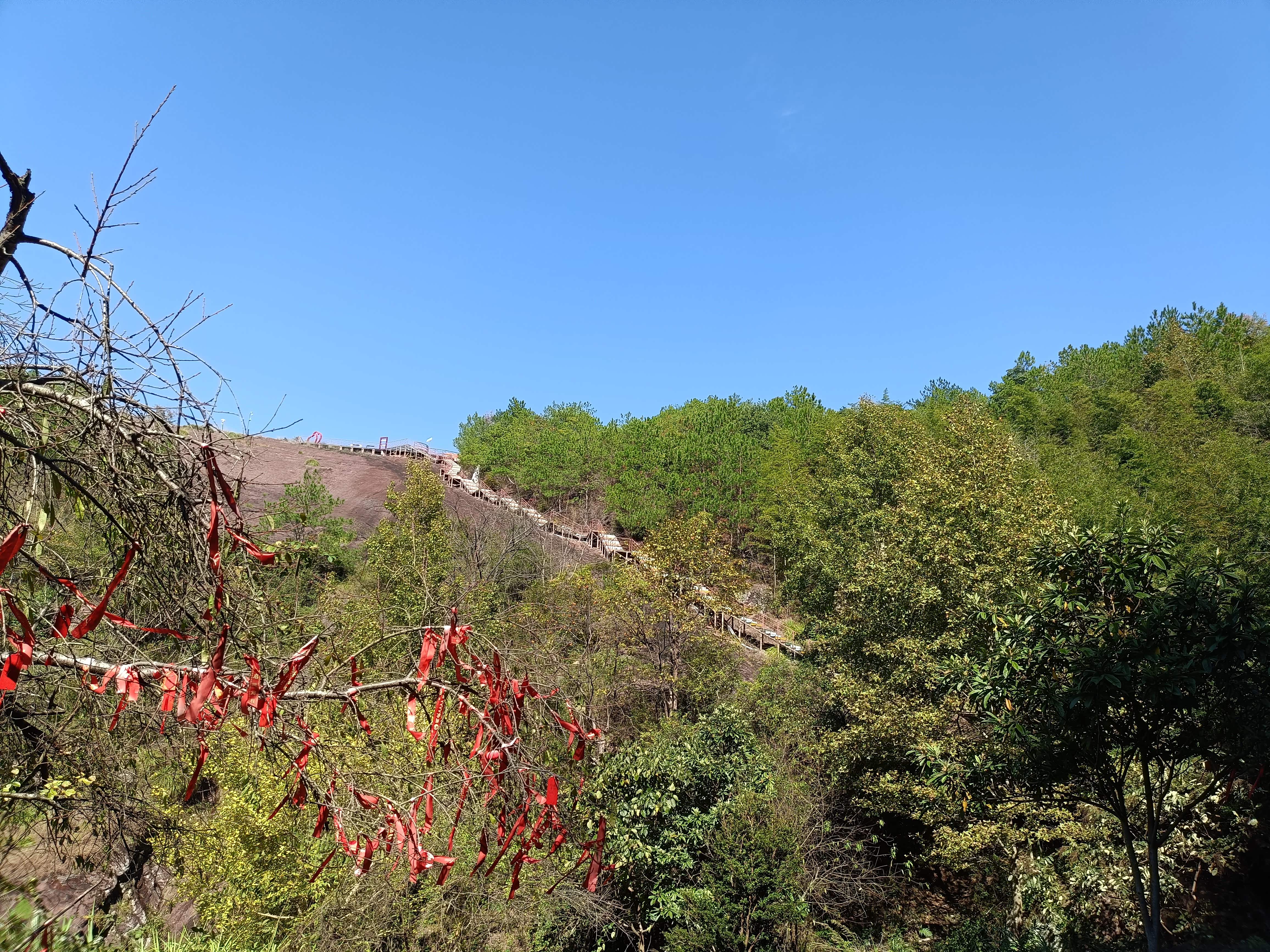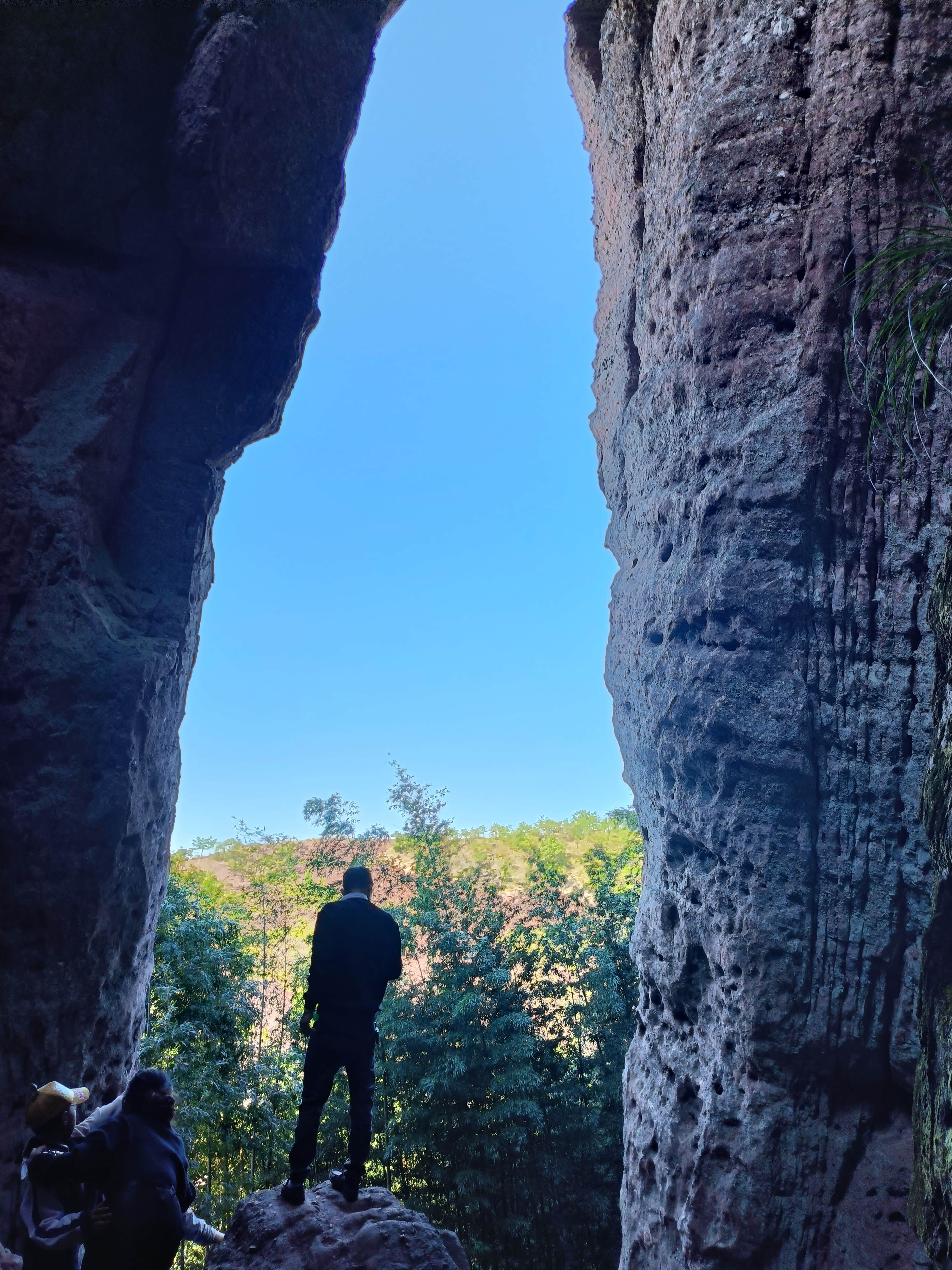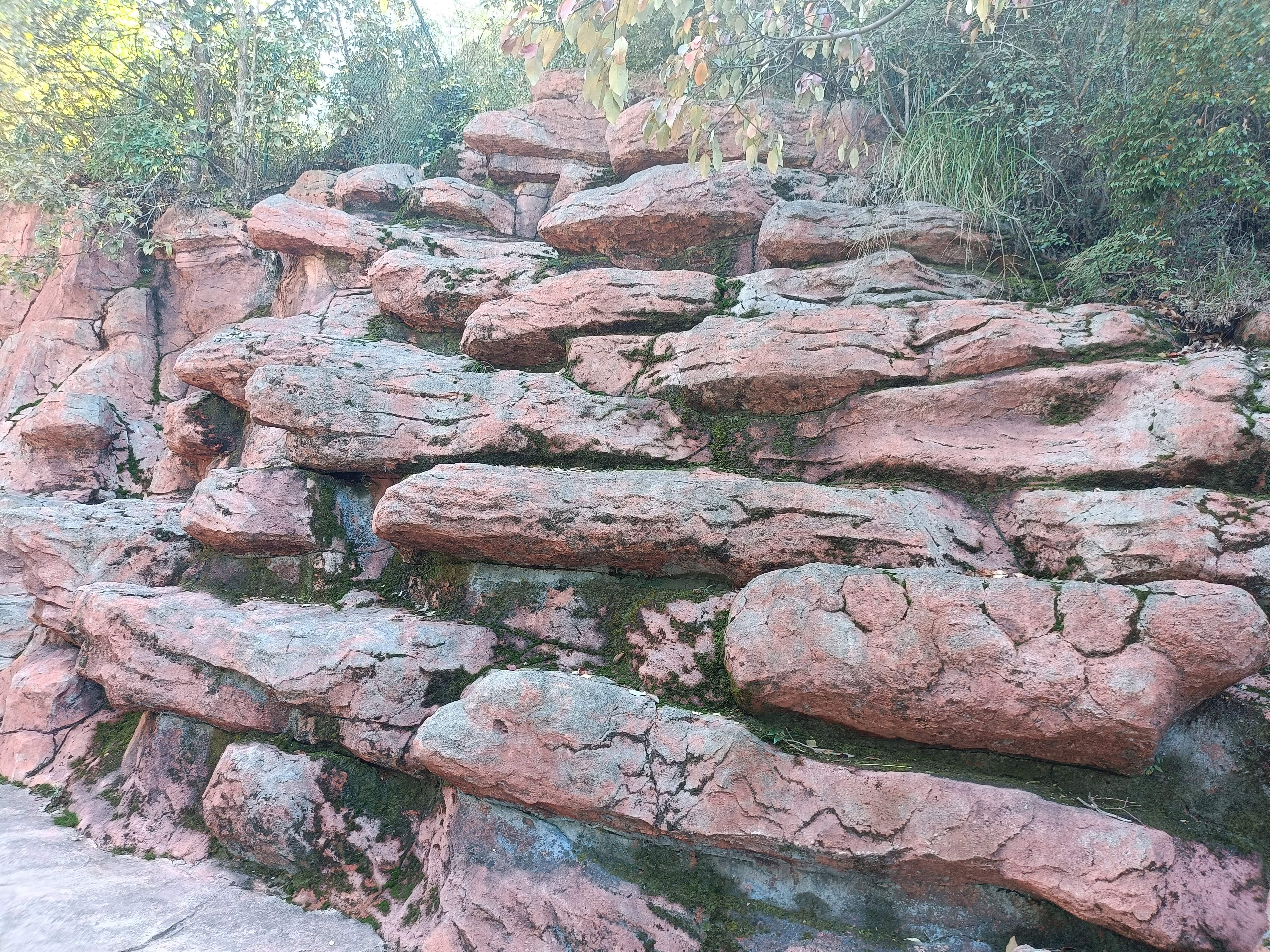 第二天早上从兴国去石城通天寨2个左右小时路程,通天寨是丹霞地貌,景色特别震撼,里面的“生命之门”“千佛丹霞”“通天岩”这些景点,🗺️通天寨奇妙探险到了山脚,开启攀登一小段台阶。