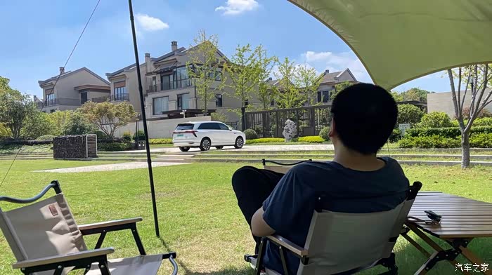 坐在天幕下,继续等娘俩磨磨叽叽。这时候对着大白一顿端详,真的是越看越喜欢,蓝山简洁硬朗特别是侧面的线条完全get到我的审美了。巧妙而不失实用的空间利用, 这款SUV满足了我除越野以外的所有需求,当初选择它,也是看中了这种外形设计与内在空间兼顾的理念。(大家可以期待一下,太太允许我给它作穿越改装!)。