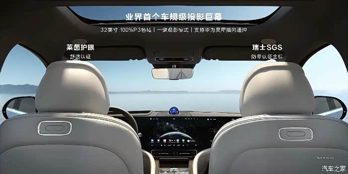 问界M9其使用的车载投影仪光源柔和不伤眼,并通过了通过德国莱茵TUV权威认证和瑞士SGS防晕认证金标,真正做到了久看不伤眼、久看不晕车。