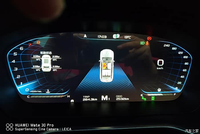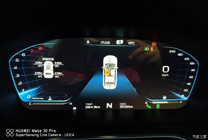 接下来我为大家用仪表盘演示!因为我的博越Pro智领是顶配全液晶仪表盘。所以电子档杆旁边的那个档位显示信息 就不会亮!为了方便大家观看!