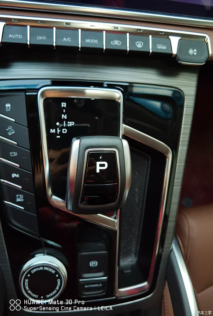 来看一下,这是电子档杆的正上方! 一键P字档!但我几乎没用过!因为我下车一熄火就自动跳到P档了!这也是电子档杆的好处!