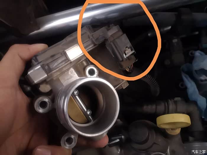 看节气门反面,注意连接节气门的线束一定不要拔掉,拔掉后会出现故障码,只要不拔就没事