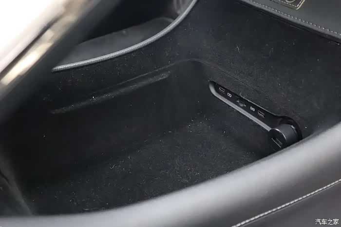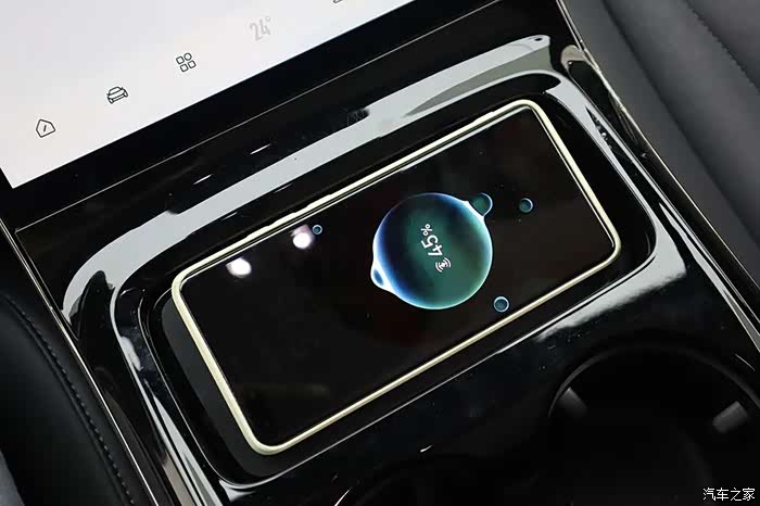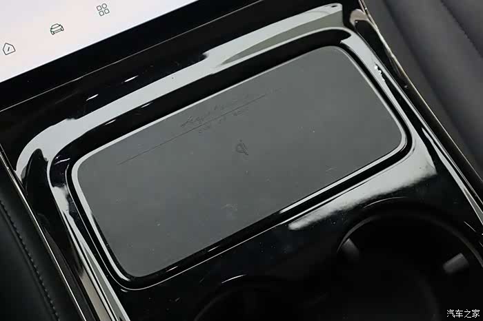 屏幕下方有一个手机无线充电的位置,有意思的是当手机放在充电板之后,充电板会自动下降,成一定倾斜角度。为了不让车辆在加速或减速过程中,因为惯性而导致手机滑脱。这样的设计相当有创意,而且很有仪式感。