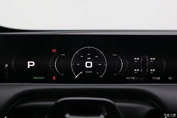 另外一半的中控屏只能显示地图、音乐以及360度影像等,当屏幕下降之后,则变成了码表显示,增强运动感。