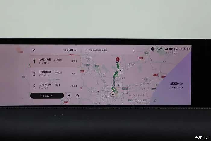 虽然仪表和中控是一体屏,尺寸达到了26.3英寸,但界面分成了两个区域。界面很清爽,信息相当丰富,显示位置比较固定。当屏幕下降之后,会自动更换另一套界面,风格要更运动一些。