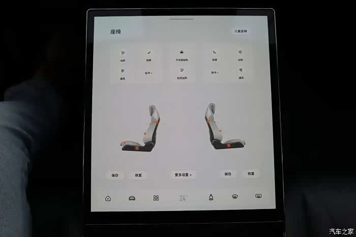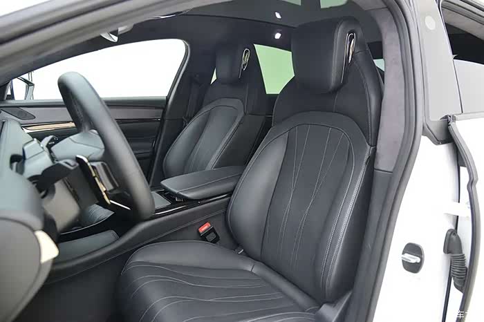 座椅全系都是皮质包裹,并且还是运动风格,填充材料软硬适中,包裹性比较好。前排座椅带有通风加热功能,头枕还带有扬声器。