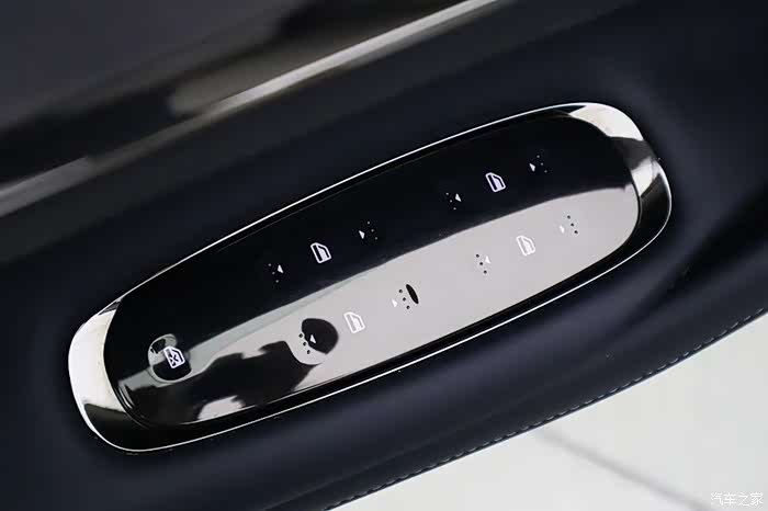后排玻璃做了黑化隐私处理,玻璃升降和门板上的座椅控制按键都是触摸形式。