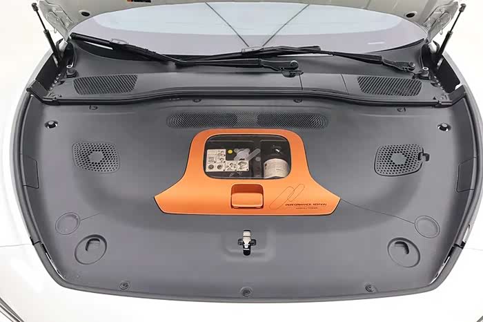 这辆车还有一个迷你的前备箱,放置充气泵和补胎液,采用透明罩子,有点超跑的感觉。