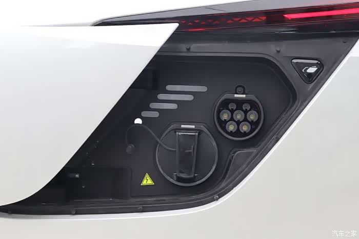 这辆车的充电口可以电动开启关闭,配有快充和慢充两个充电口。