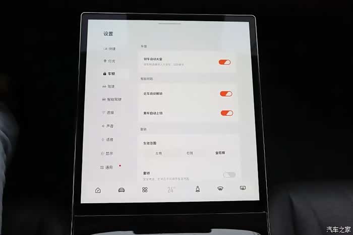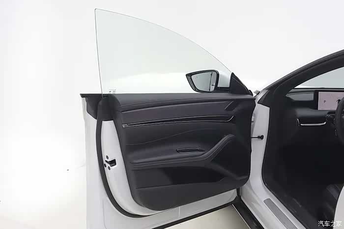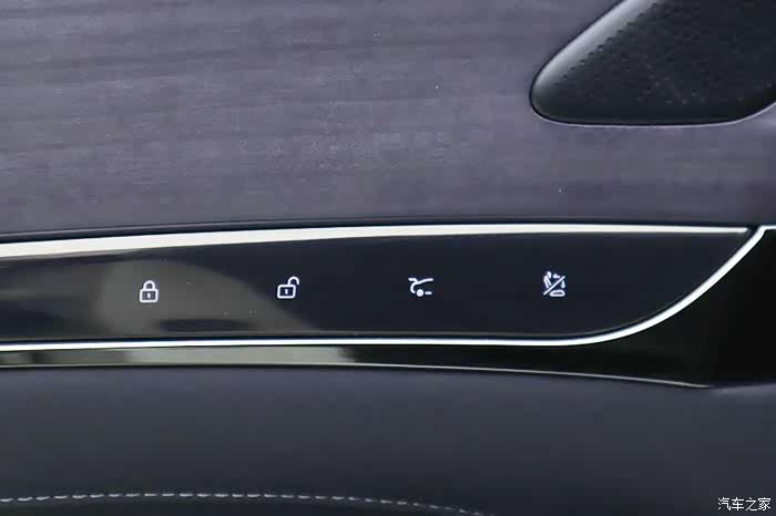 车门是无框设计,前后窗都使用了双层加胶玻璃。主驾驶车门配有电动自动开关门的功能,其余车门都有电吸功能。车窗升降按键是虚拟按键,带有震动反馈。