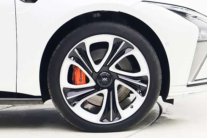 整车尺寸为5098x1960x1485毫米,轴距长达3100毫米。这样的尺寸甚至比奥迪A6L还要长!轮毂是黑白相间配色,显得比较动感,配有橙色卡钳的布雷博刹车系统。