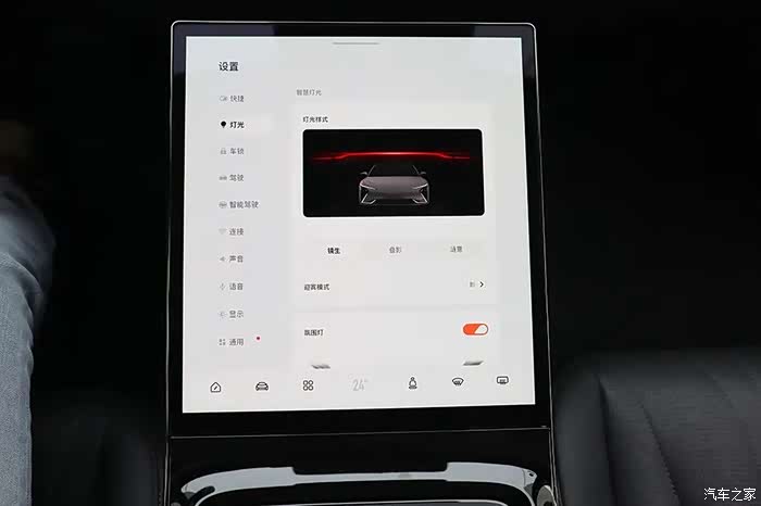 长条联屏的下方还有一块12.8英寸触控屏,这里可以控制所有功能。车外投影大灯的显示内容,也是通过这块屏幕完成的。