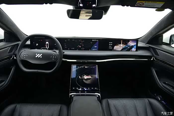 这辆智己L7的外观算得上比较吸引眼球,投影大灯和交互屏的使用,更是为这辆车增添了科技感。内饰部分设计风格简洁,做工精细,颇有美式豪华车的感觉。三块大屏,直接解决了车内99%的系统操控,尤其是23英寸的超长显示屏还带升降功能。如此大胆的实践,也是令人侧目。