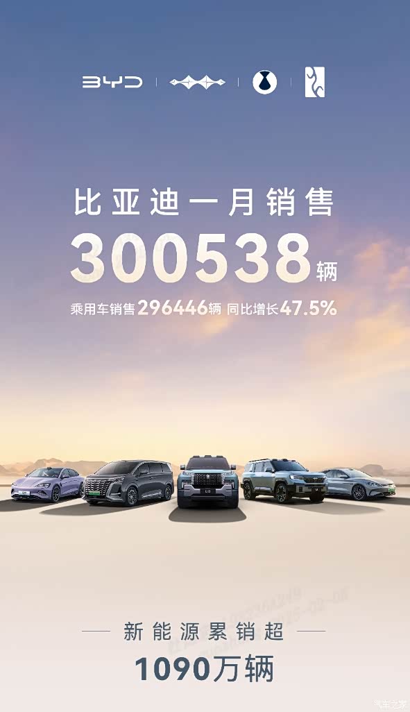 从23年1月的151341辆,到24年1月的205588再到25年1月的300528辆,同比增长50.3%销量简直稳步攀升