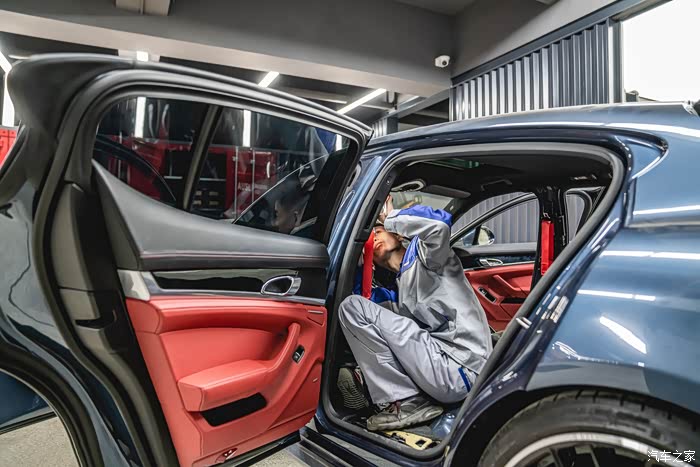 如果说车辆的内饰拆装及真皮包覆占到整个施工内容的80%的话,那么剩下的20%将要交给试车,毕竟任何一个车主都不会希望在如此崭新光鲜的驾驶室内听到异响。事实证明,技术组同事这几年积累下来的拆装经验以及花去的30余小时安装时间实实在在地起到了作用,经过100公里左右的长时间路试,我们完全没有在这台车内感觉到任何异响,而这台panamera的室内装修工程也得以告一段落。