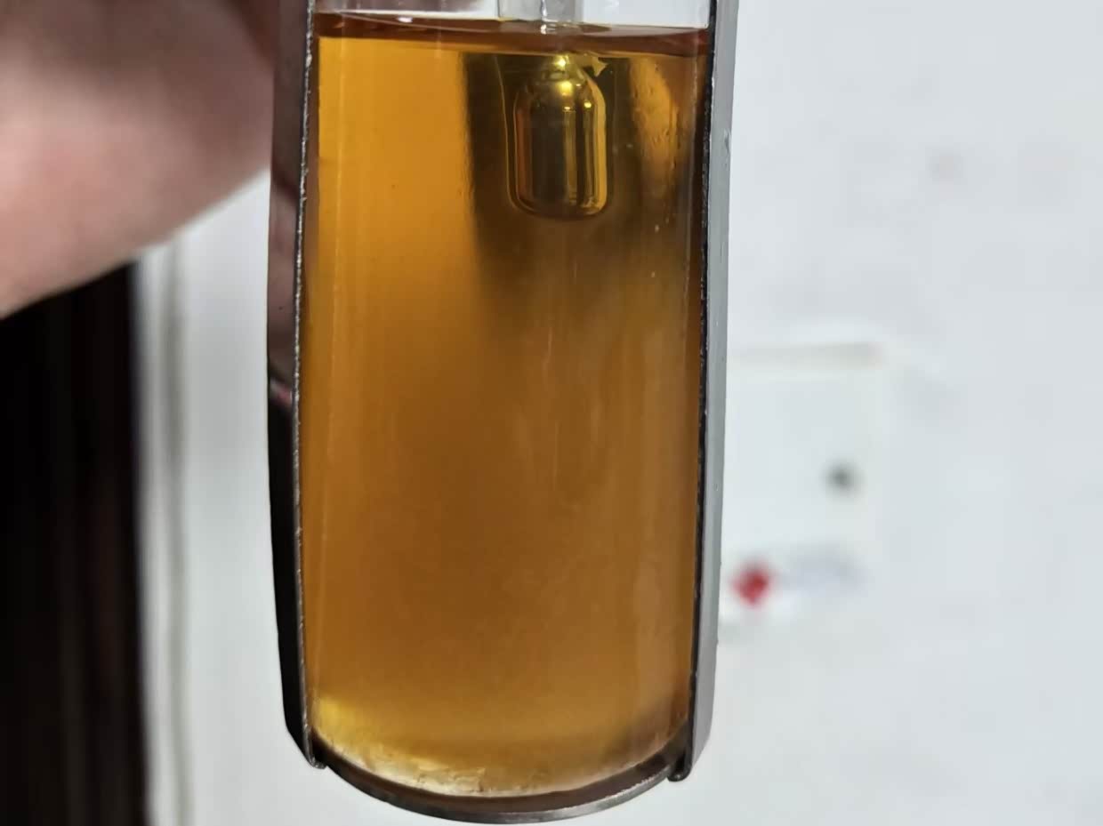 样品来源是某宝某室,油样颜色是清澈的黄色;