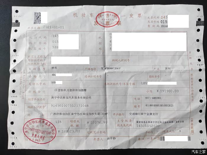 发票价格191900,把精品开进发票里了,让我购置税对了几百吧