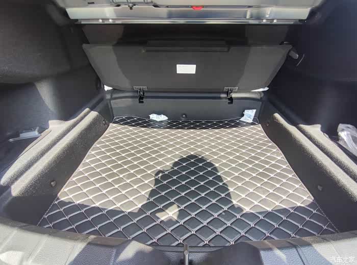 下层尾箱;垫子是4S送的,挺合适的。一系是防爆胎,没有备胎,所以做成了“上下两段”。据说不在厂家订这个三段式的隔板,原车是没有右侧(图片右上角)那个卡扣(具体我没看其他车型)
