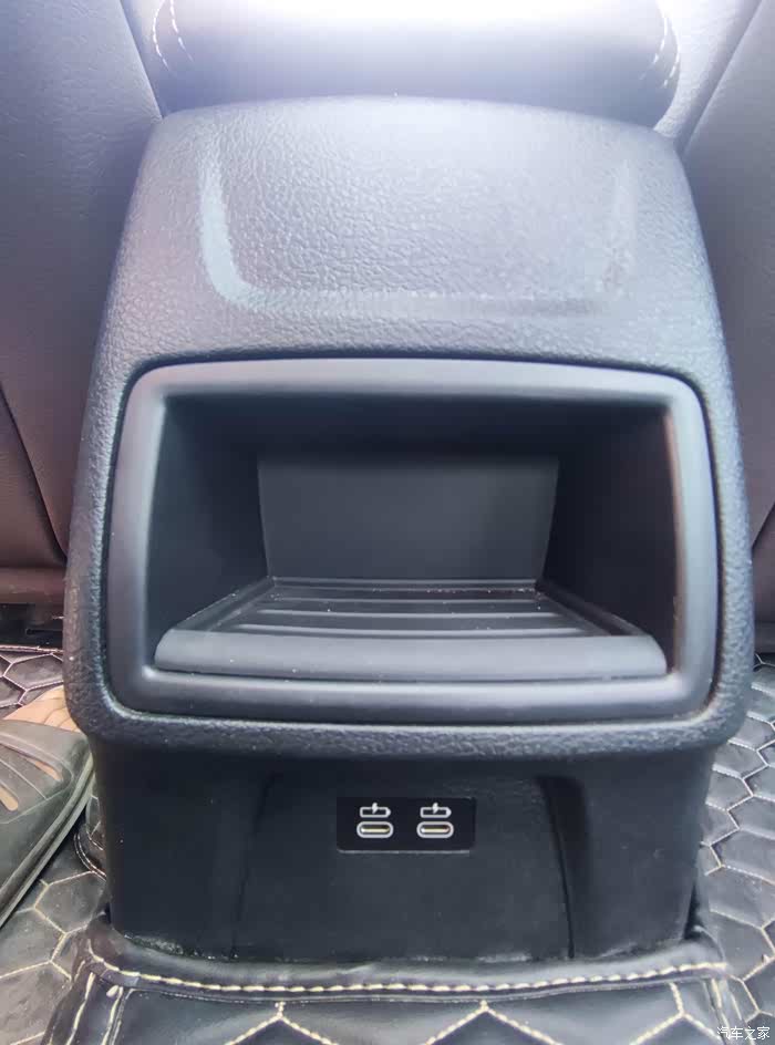 两个Type-C充电口+储物格,这个价位没有后出风口我多少有点失望;储物格有防滑垫,想不到这个地方能放什么,可以放得个5寸的手机吧?
