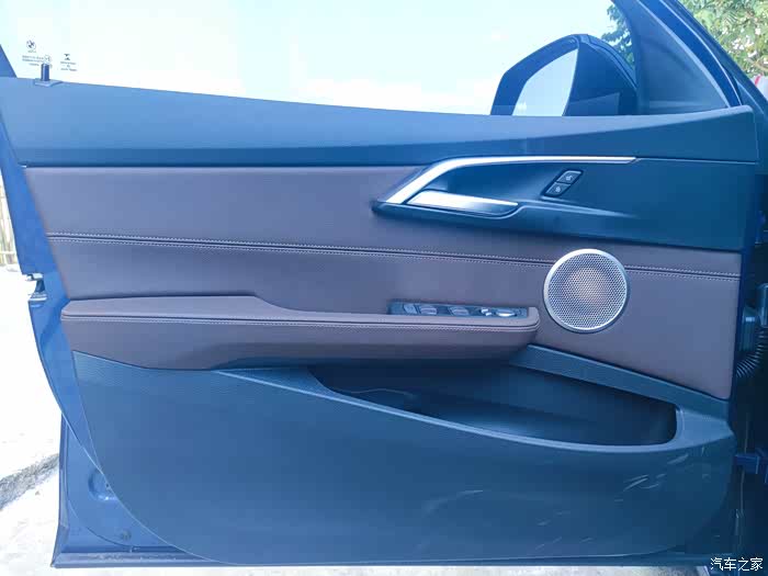 后车门;除了开门手把和储物格是塑料,其他都是皮,质感满满