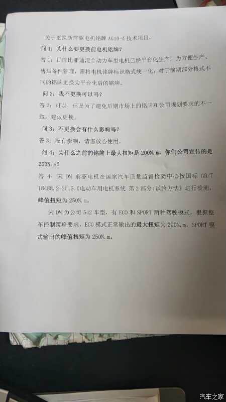 有的网友铭牌本来是250,到4S电后被换成了没有扭矩的铭牌!