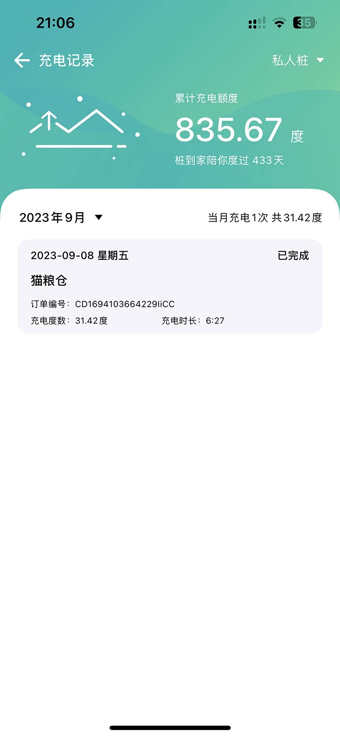 九月目前只充了一次电