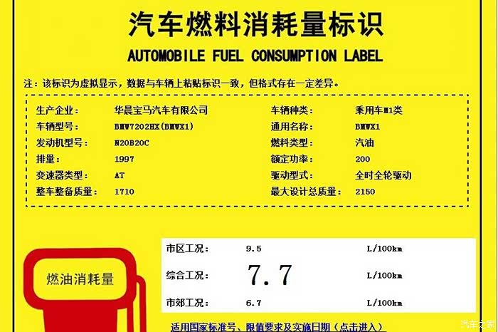 宝马向来在参数上比较低调,N20B20C高功率版对外发布的马力是180kw(245ps),但这是最大净功率,而其他厂商无一例外都标识更大的额定功率(二者区别可自行百度)。要让宝马和竞争车型真实公平地对比,就得参考工信部燃油标识(黄纸)上的数据。如图所示28i的额定功率是200kw,也就是272马力,远比宝马自称的245马力高。这就不难理解为什么高功率的N20可以让重达1.7吨的X1在6.5秒内完成百公里加速了,E84堪称SUV中的钢炮。