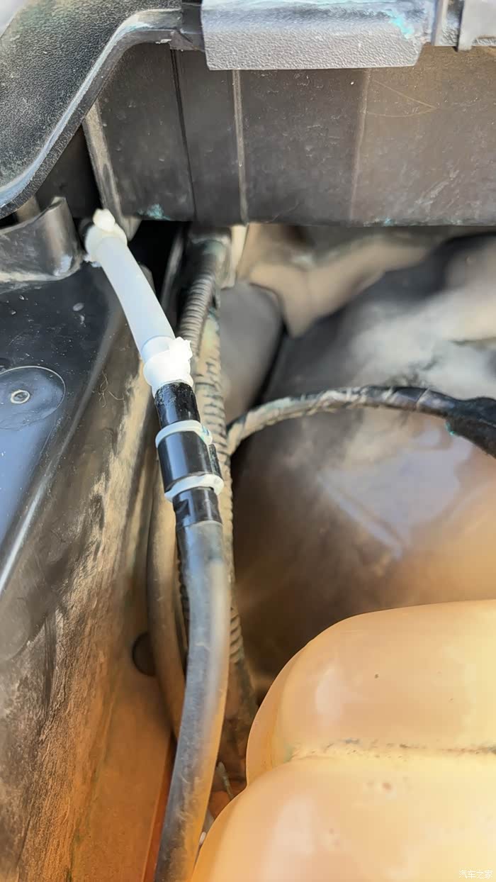 各位,16款锐界2.0T,偶然发现机仓有玻璃水,检查后发现水壶后边波纹水管断裂,因暂时维修不便,先用清洁剂吸管加防水胶带连上,再点万能胶加扎带,不知能用多久,有哪位在4S换过这种管,大概费用多少?