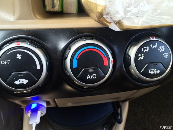 手动空调,难受这款车没有自动空调,最右边的是后窗加热和后视镜加热
