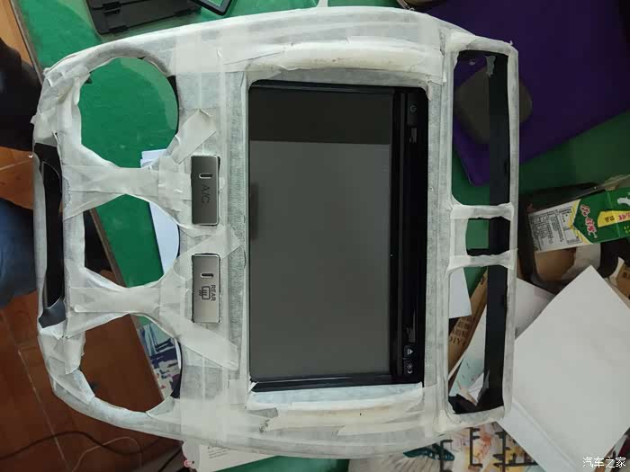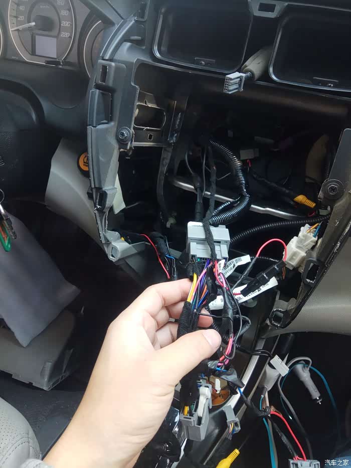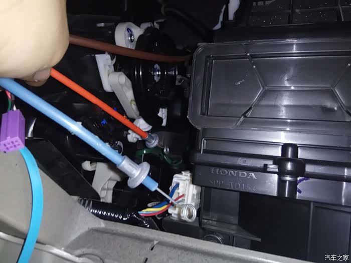 开始装车,首先把副驾驶位的面板查下来,把空调控制线拆下来,金属片夹得太紧,弄出来不容易。