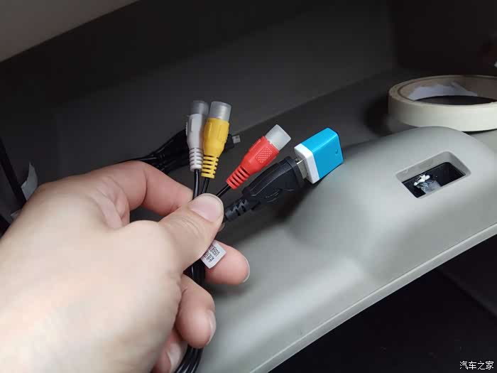 红白黄AV端口延长到了副驾扶手箱,为以后升级手机投射预留。USB也放在这里