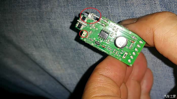 白色胶去掉后清理干净大红圈的那个东东,其实它就是一个光敏二极管,是一种能够将光转换成电流或者电压信号的光探测器,下边小圆圈就是贴片发光二极管,我们锁车后发出的一闪一闪红光就是由它发出的