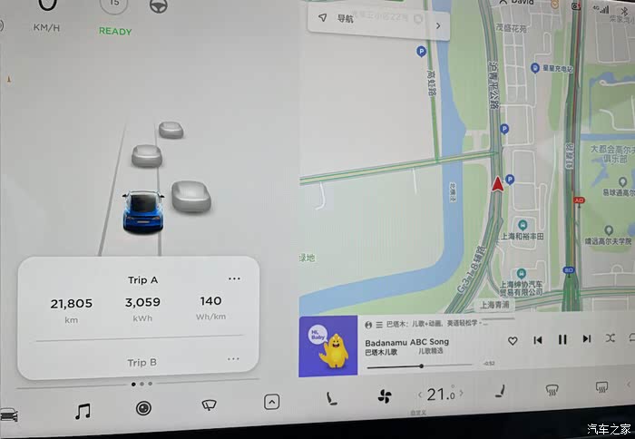油车电车对比的话,我这台Model 3基本就是遛娃车,后排2个安全座椅,出去玩、停车场休息、充电,这些时间小孩都喜欢在屏幕上玩玩游戏、看看视频、画画,这方面确实体验很好。但是油车长途感觉更安心一些。