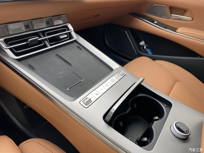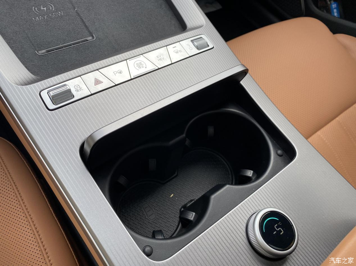 在屏幕下方可以弹出杯架,而屏幕的后方则是储物格,里面隐藏着充电接口,可以说坐在后面也太滋润了,搞得我都让媳妇来开车,我去坐后排享受了。
