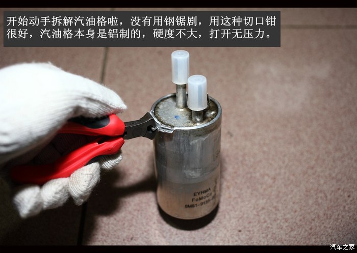 开始拆解,由于汽油格本身是铝制的,所以相对于机油格拆解来说简单多了。