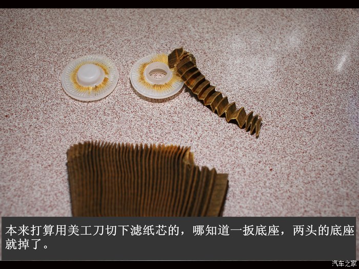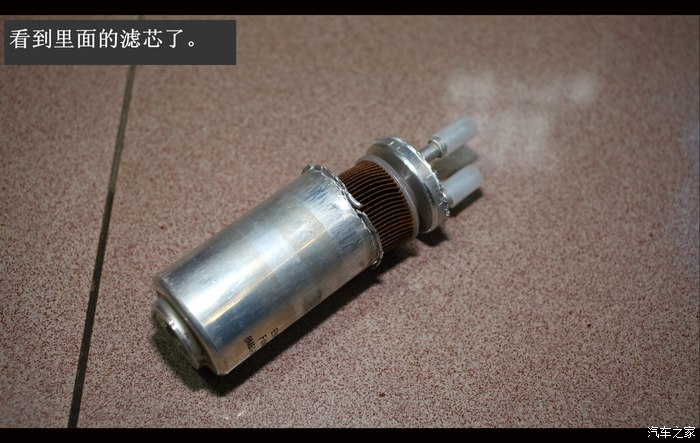 ,换下来的旧件就想了解了解里面的情况,看看到底过滤得怎么样。我个人认为这一年多来,选择的加油站加油质量还不错,那就让我拆解一下继续论证吧。