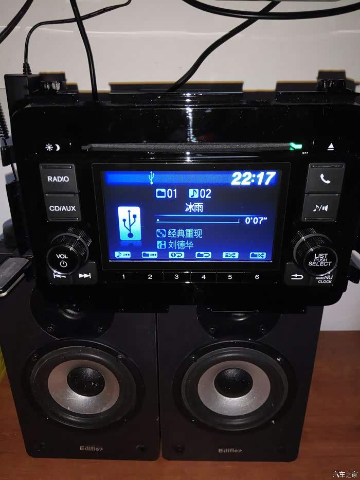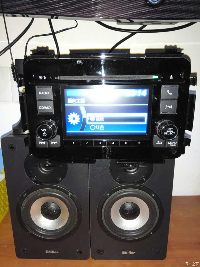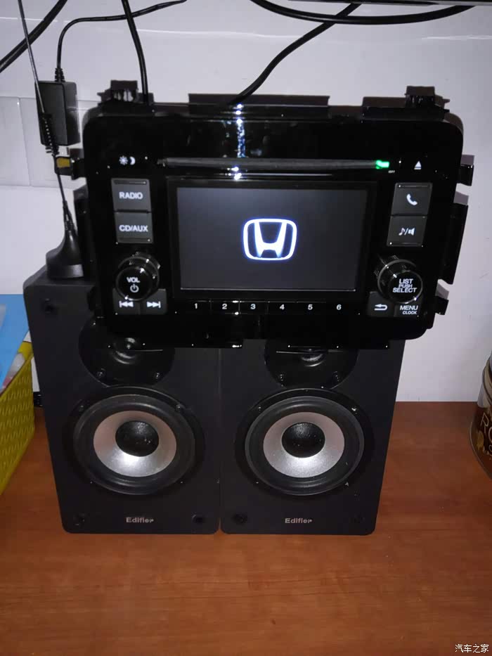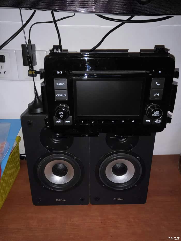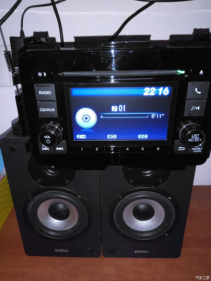 朋友买了X-RV,还没出四儿子就被强迫装了导航,所以多了个原装的5寸中控屏,我给要了过来,自己动手改装,不是改到我蓝胖子上面,因为我蓝胖子有了7寸的凌派,用的也不错,就改成家里面用的,听听广播放放CD,用的老的漫步者的木质音箱,音质杠杠的!