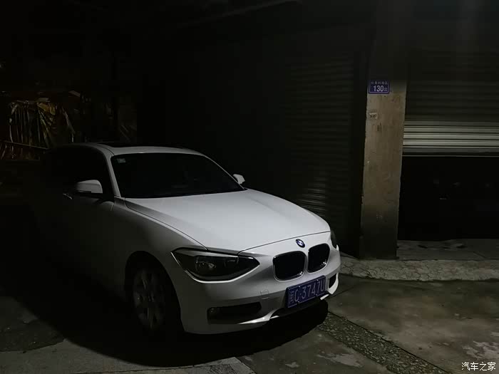 新牌到手,在自家车库门口拍一张,有牌照后第一次回家!黑夜中效果不错!