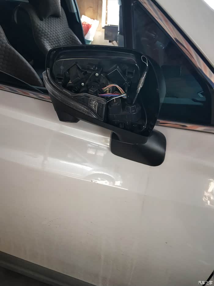 倒车镜安装完毕,记住穿线从车门上自带的胶皮小堵处