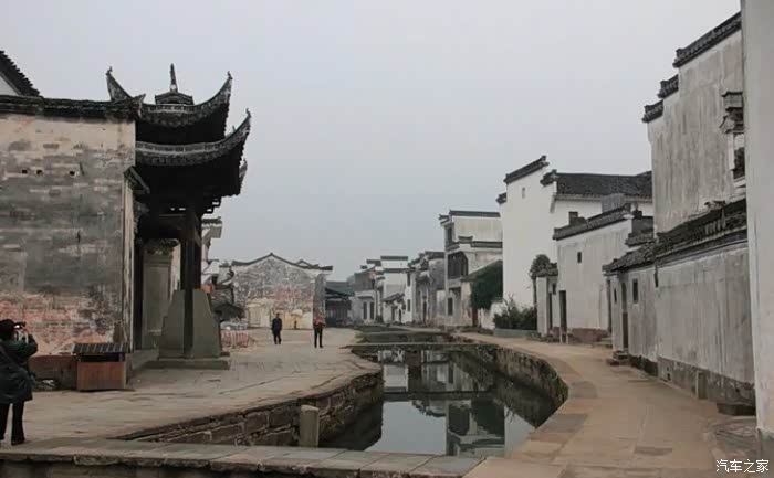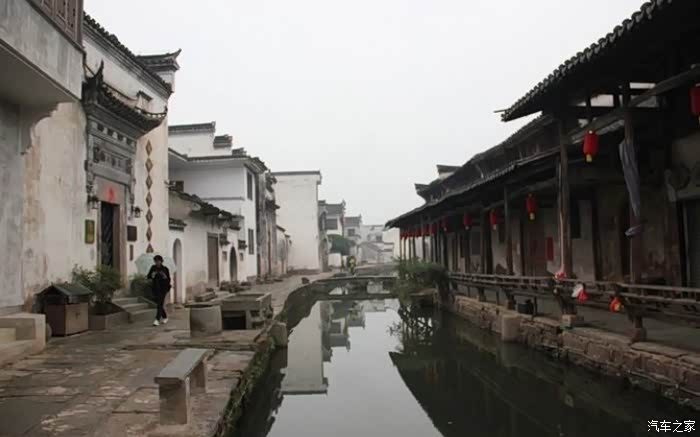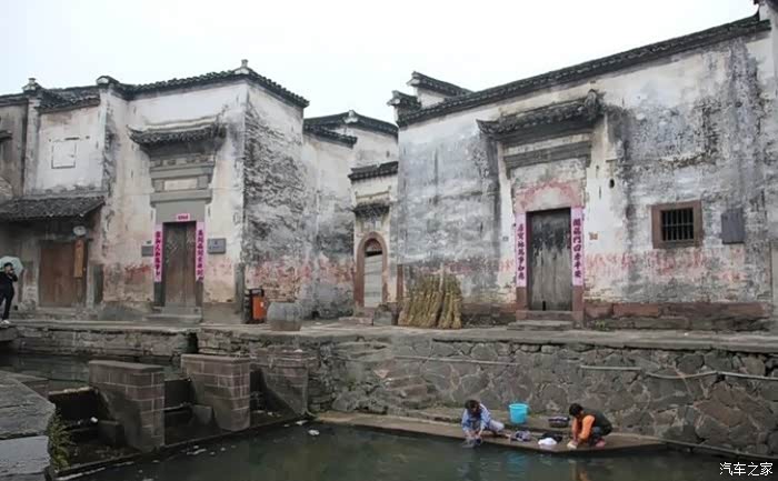 小溪的两旁,错落有致地分布着典型的徽派建筑,青砖黛瓦马头墙,古朴沧桑……