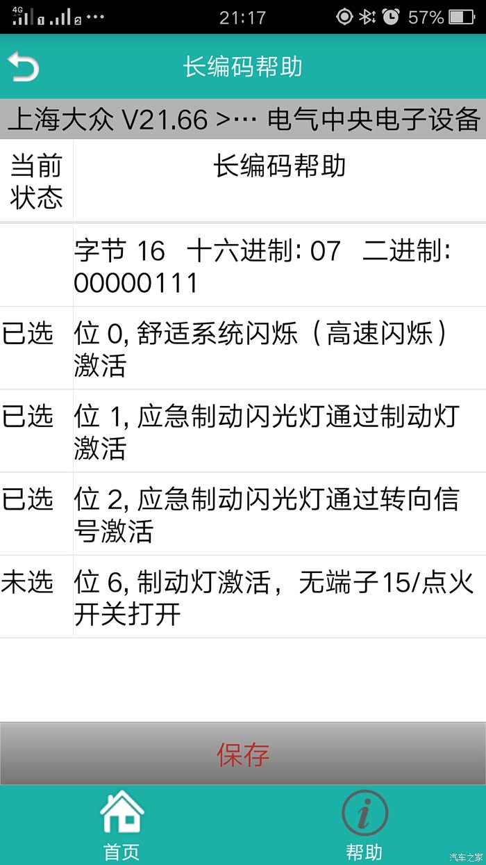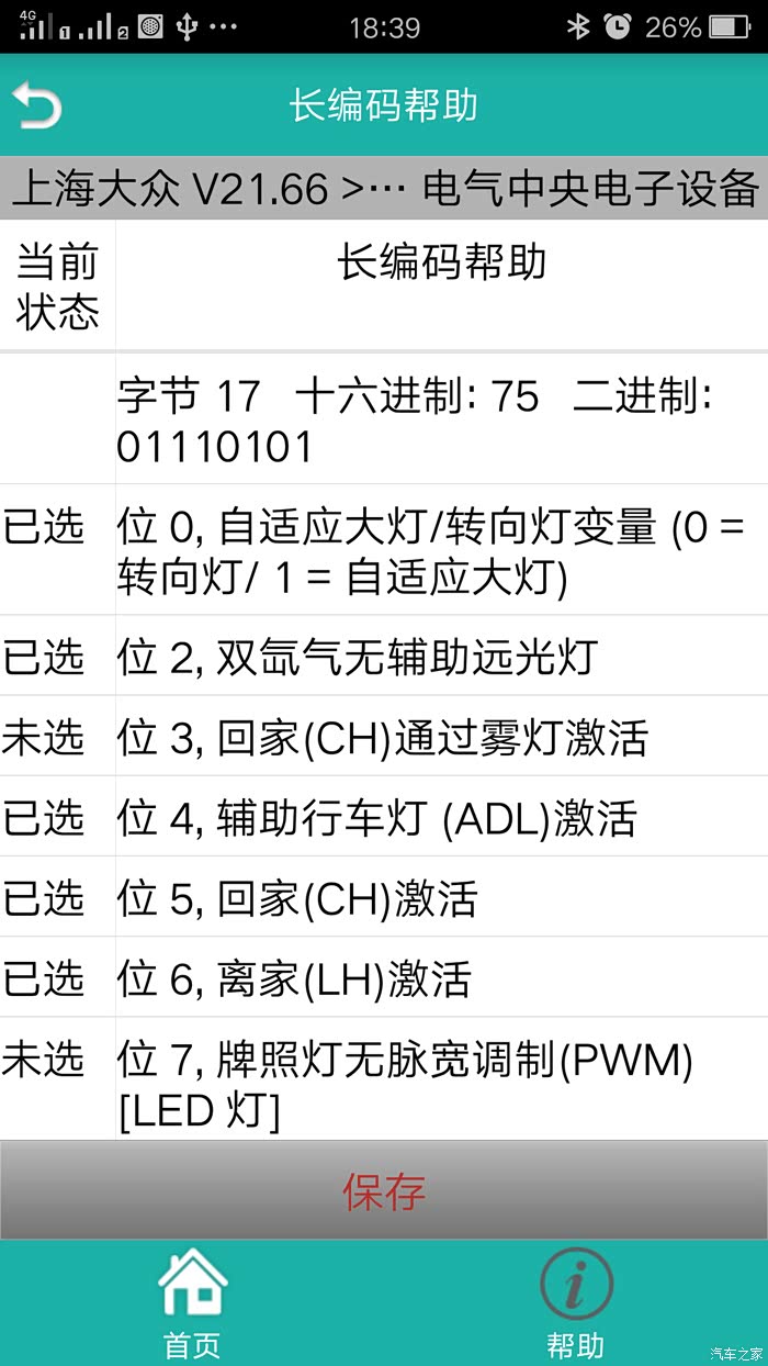 选择模块——09-中央电气系统——21 长编码——长编码帮助——字节17——勾选(Bit3雾灯控制回家(CH)激活)——存储