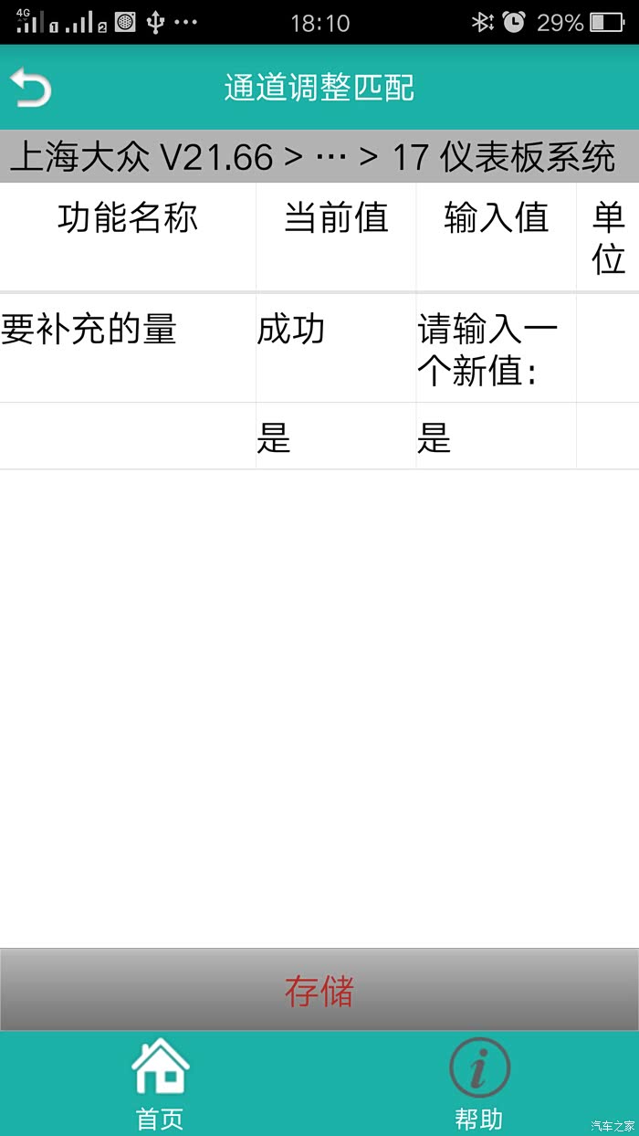 系统选择——17 仪表板系统——10 通道调整匹配——要补充的量——新的数据(是)——存储