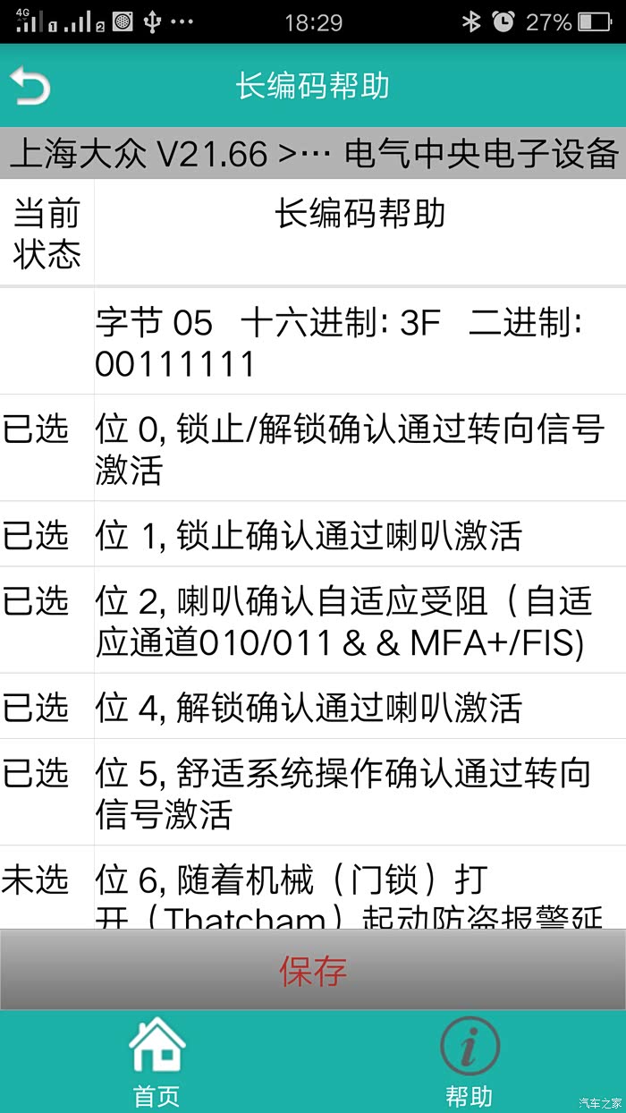 选择模块——09-中央电气系统——21 长编码——长编码帮助——字节5——勾选(Bit1上锁确认 报警声激活)——保存
