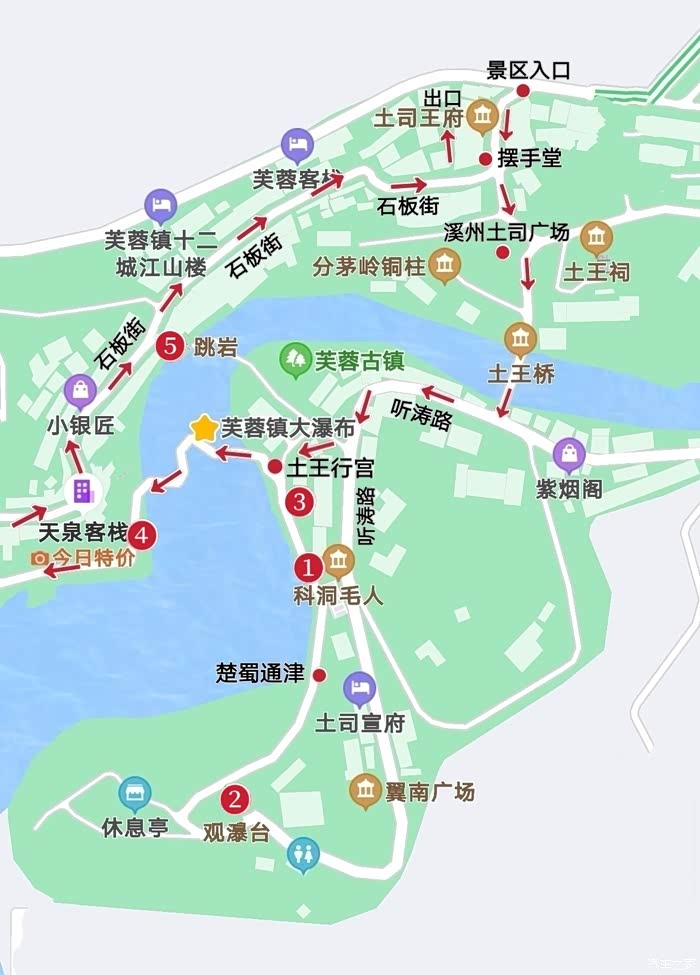 芙蓉镇原名王村镇,因电影《芙蓉镇》而改名。地处武陵山区,东与长官镇相邻,西与抚志乡交界,南与古丈县河西镇隔河相望,北与高坪乡、松柏乡相接,距永顺县城51千米。 [1] 此景区是湘西州委宣传部主导的“神秘湘西爽一夏”活动的主要景区之一。春秋战国时期属楚,秦时为黔中郡,西汉高祖元年(公元前206年)置酉阳县,唐天授二年(691年)置溪州灵溪郡,王村为大乡县,元代置永顺安抚司,明洪武五年(1372年)升为湖广永顺等处军民宣慰使司,至清雍正七年(1729年)“改土归流”后设王村为永顺府辖区,后改永顺府为永顺县。