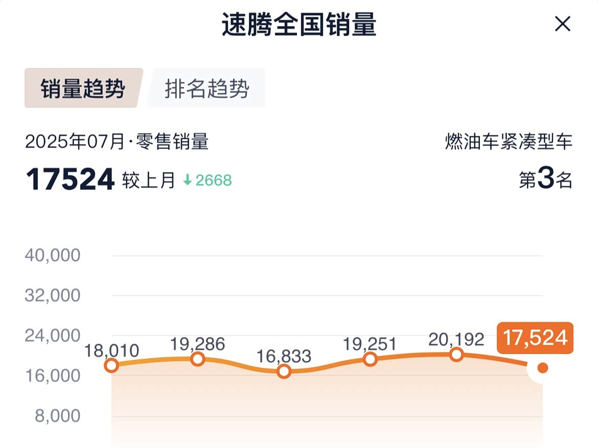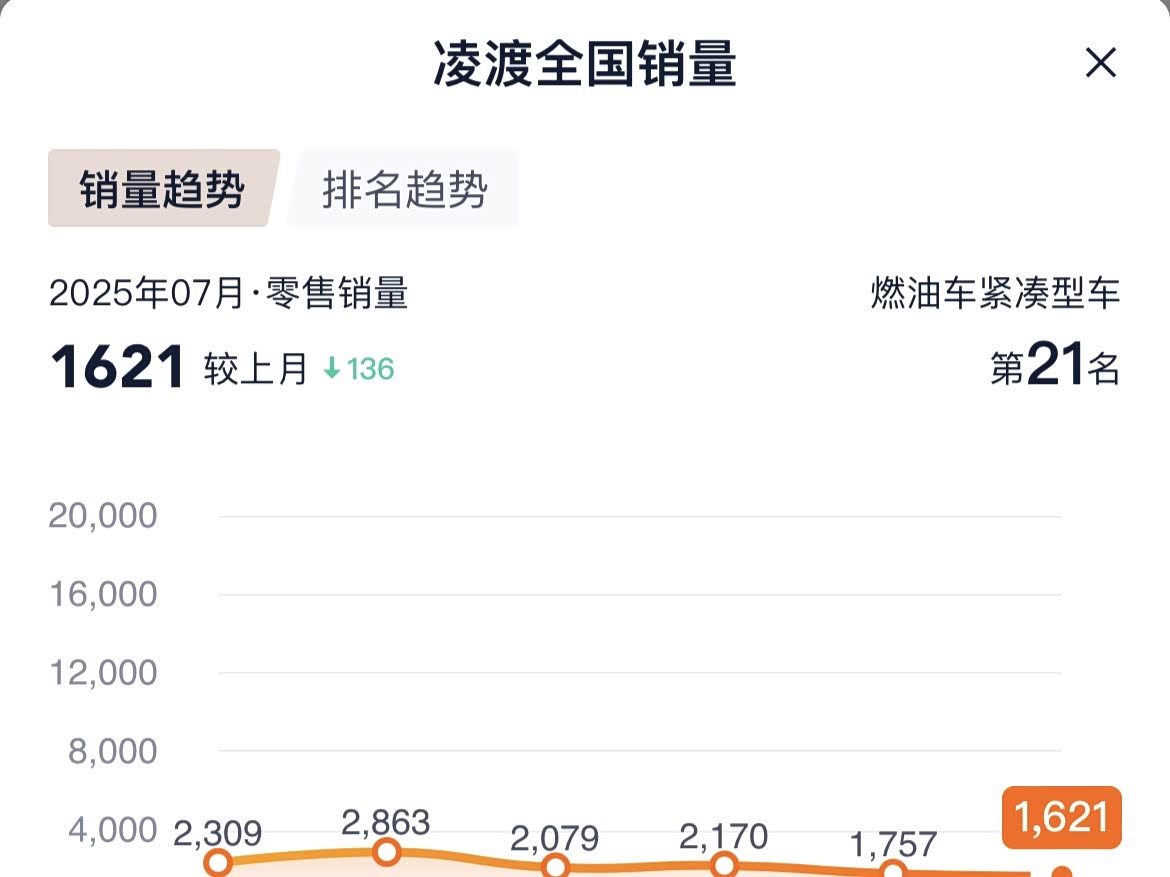 这个是速腾的销量,平均两万不到吧。同样是前后独立悬架,轴距2.731,也是德系,这里就不讨论纯不纯的事,都是挂着大众标的,相差两三万你怎么选?市场会揭晓答案。当然凌渡也不是说绝对怎么样,最少还有每月两千多为外观颜值买单的。但是终究还是路有点窄。