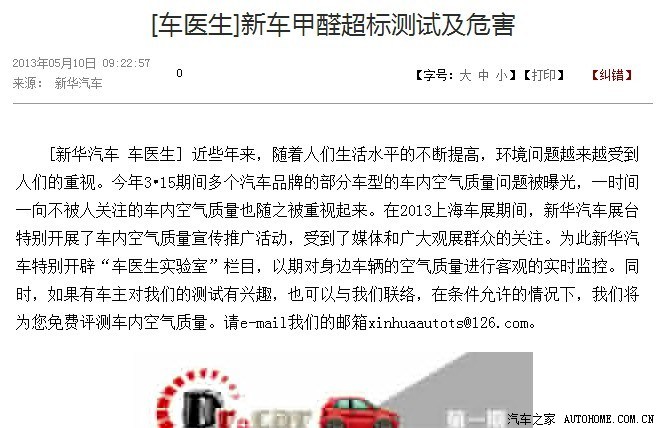 之前有在论坛上看到有纳智捷的车主每天看车45分钟以上,两个月下来得了心肌梗塞和肺部疾病,原因是车内甲醛浓度超标。当时我心有余悸,想要测测自家车内的甲醛浓度,但迟迟没有实行。