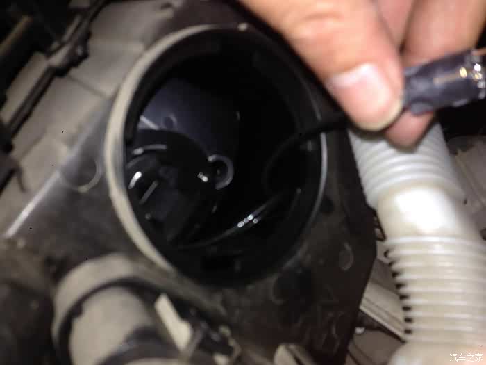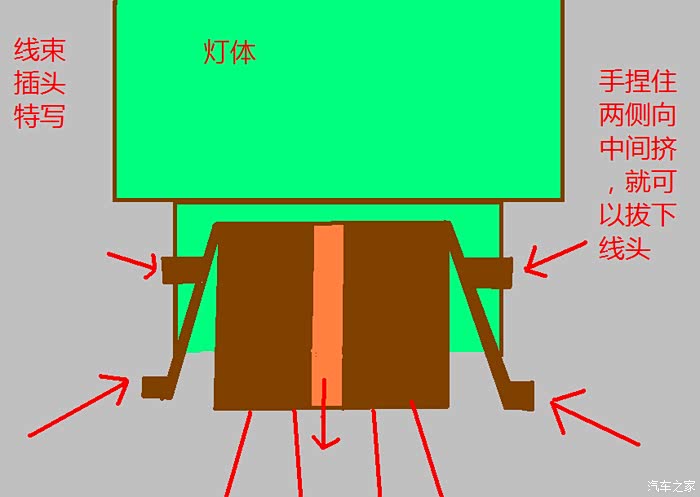 这个相对简单,打开机盖,拧开远光灯灯罩,拇指食指伸进去,捏住插头拔下来就可以。注意不要捏住线拔,以免拔断了。