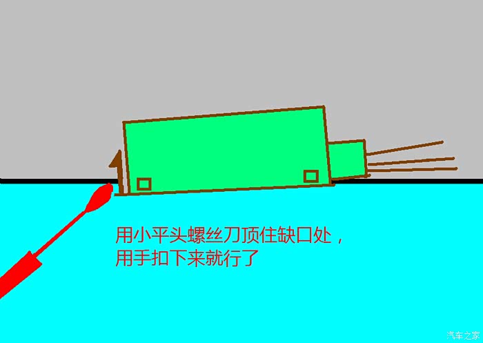从简单的开始,后排,直接用撬棒,沿着塑料板周围撬开!给个示例图